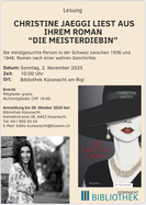 10:00 Uhr in der Bibliothek eine Lesung mit Christine Jäggi statt.